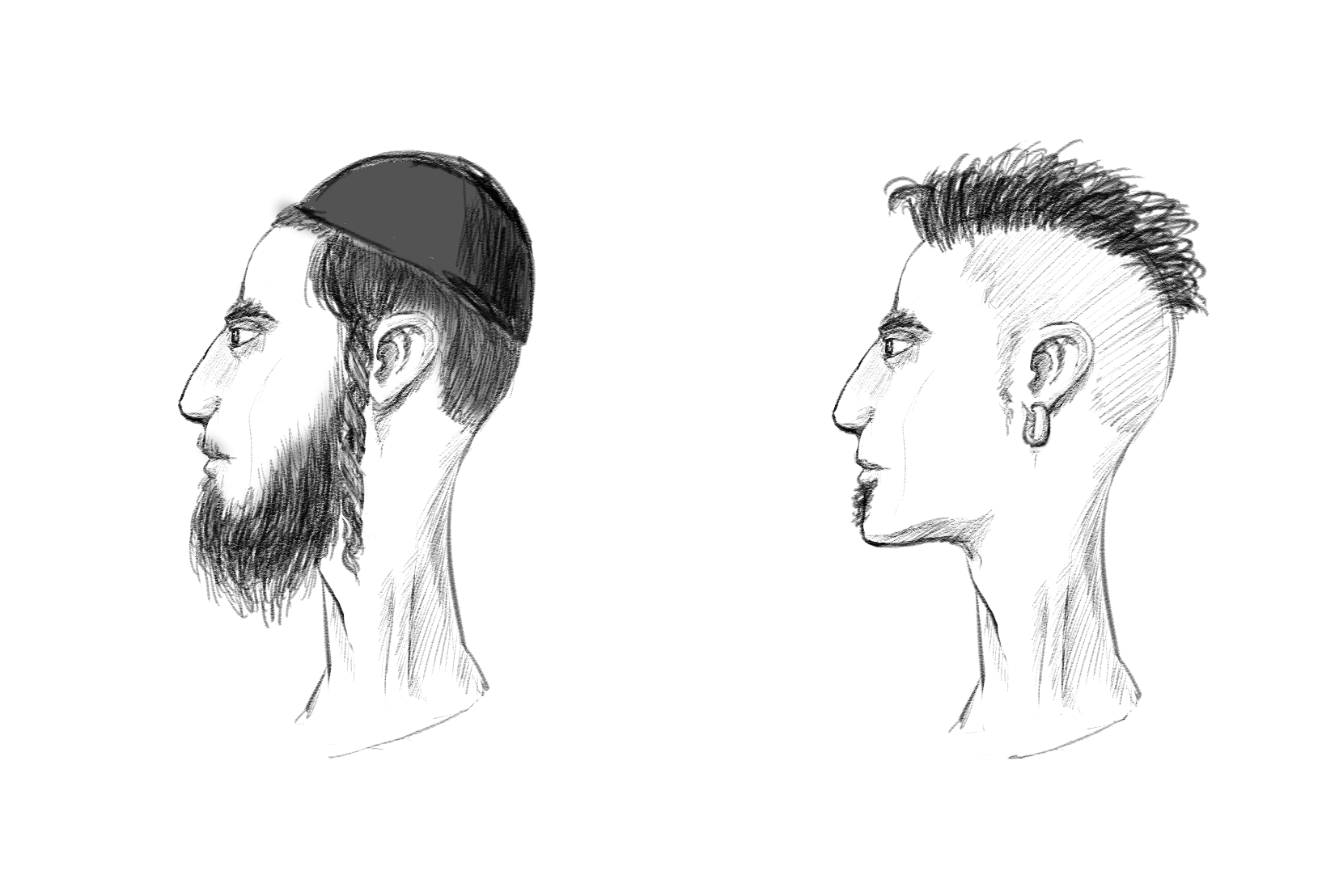 הציור מדהים! מה שמפריע לי בפרט אצל החרדי שהצוואר כ''כ חשוף, עד למטה.