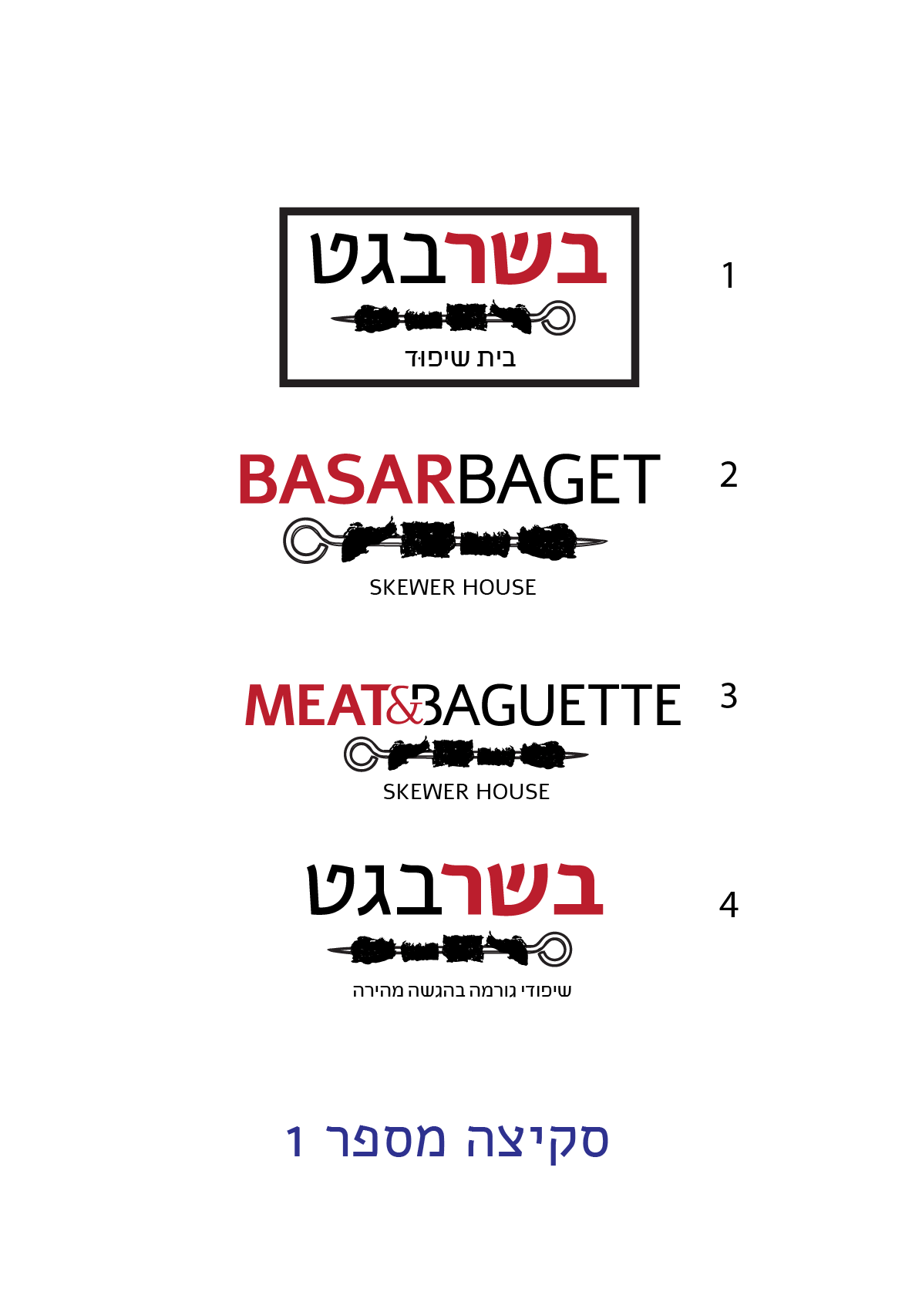 מגוון של שיפודי גורמה המוגשים קומפלט בבגט. אין הגשה בצלחת.