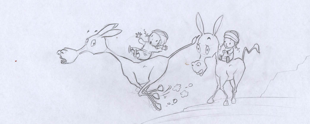 בסקיצה השלישית לחמור השמאלי זה נראה שיש לו שני פרצופים אולי העצם של האף צרה מידי