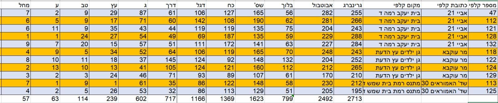 ואם נחשב לפי זה אז התוצאות הם כדלהלן: