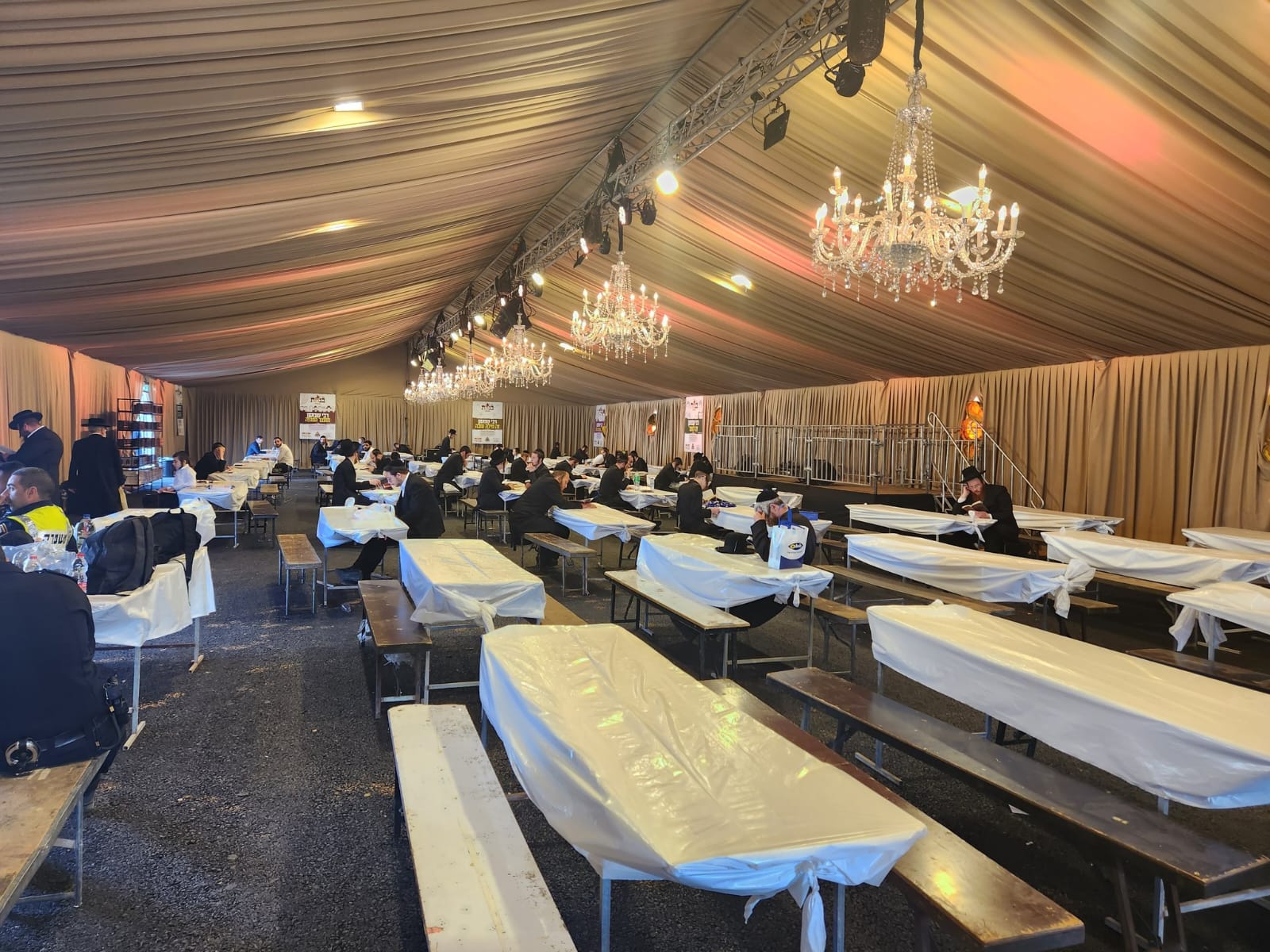 הכנות להדלקה הפותחת ע"י האדמו"ר מבאיאן שליט"א.