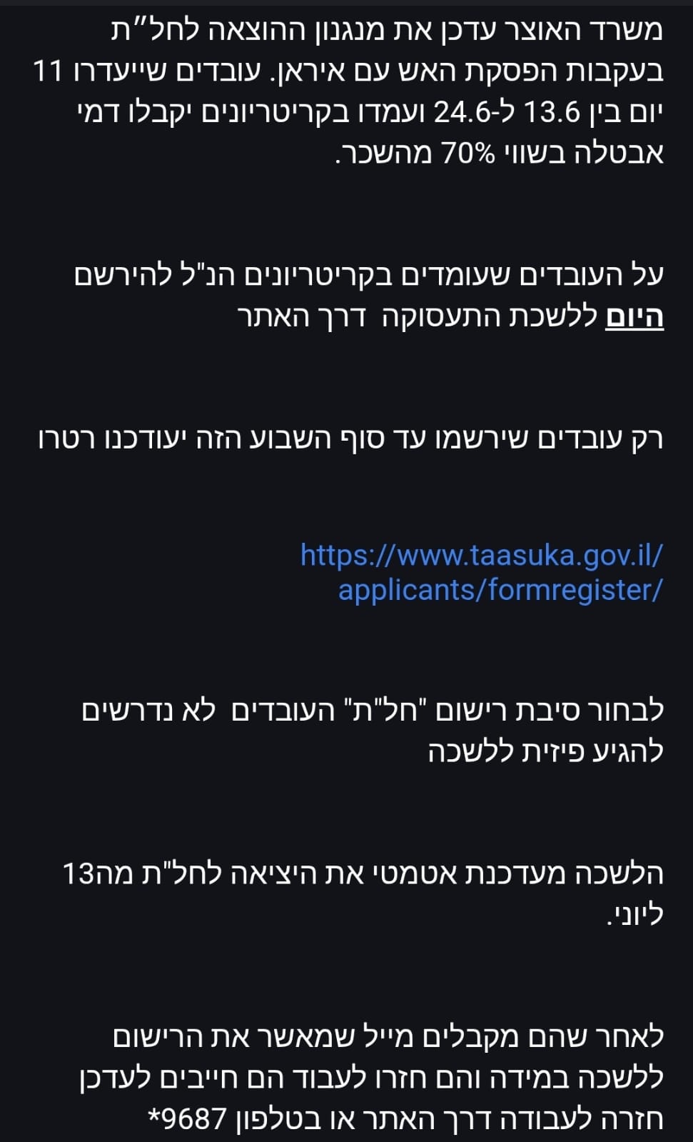 על העובד לברר מול מעסיקו אם הוא נמנה על רשימת העובדים שבצו הקריאה.