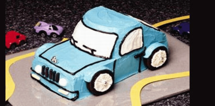 10. להשתמש בסוכריות הליקוריץ ליצירת המגבים, הידיות והמסלול. לחתוך את הסוכריות העגולות הלבנות ליצירת אורות קדמיים ואת הסוכריות האדומות ליצירת אורות אחוריים. בעזרת סכין ליצור חישורים על הקרם בגלגלים. אפשרי: במרכז כל גלגל להדביק צרור של סוכריות כסופות. ניתן להדביק סוכריות אלו גם על שולי הפגוש.