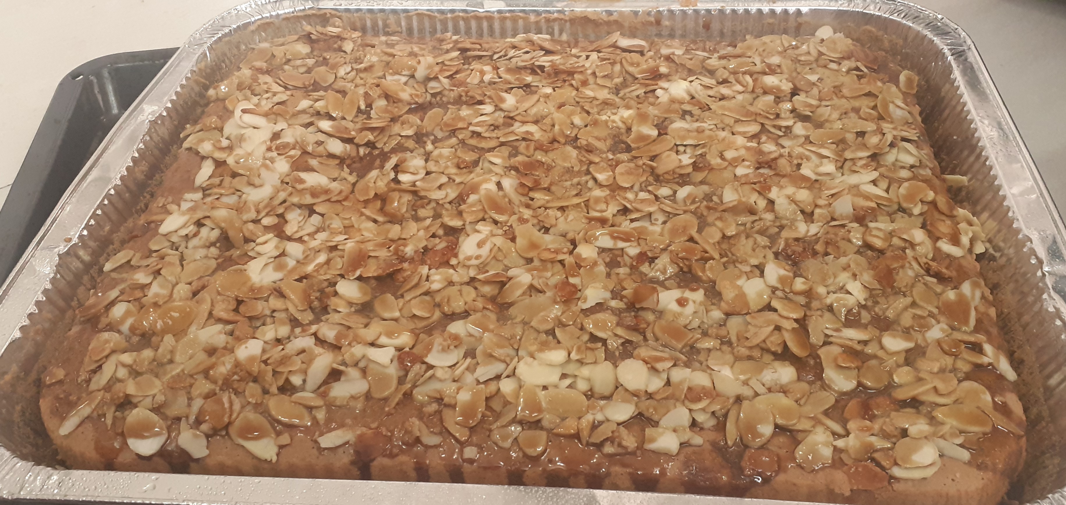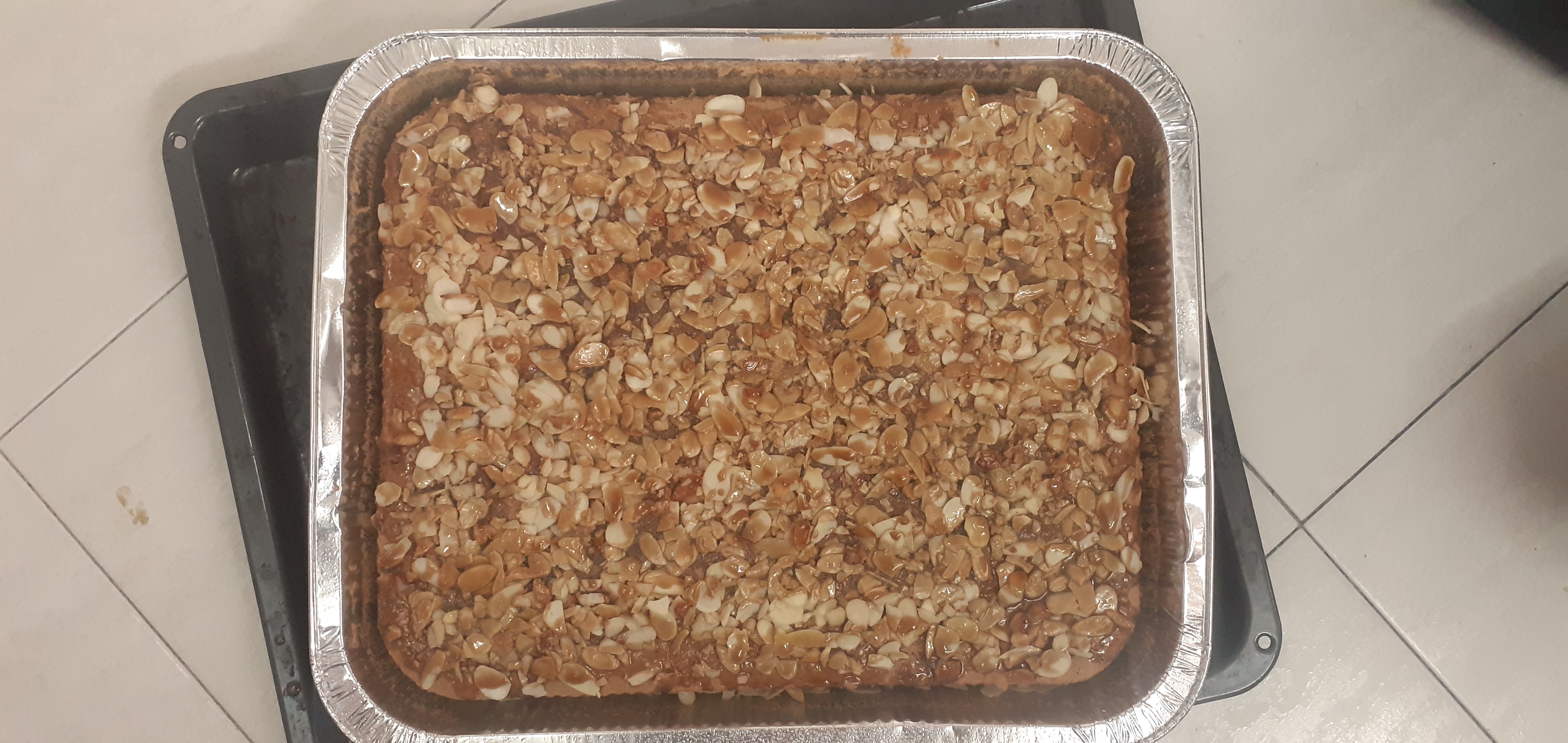 העוגה בתנור, אבל בעלי והשקדים עוד לא הגיעו ;)