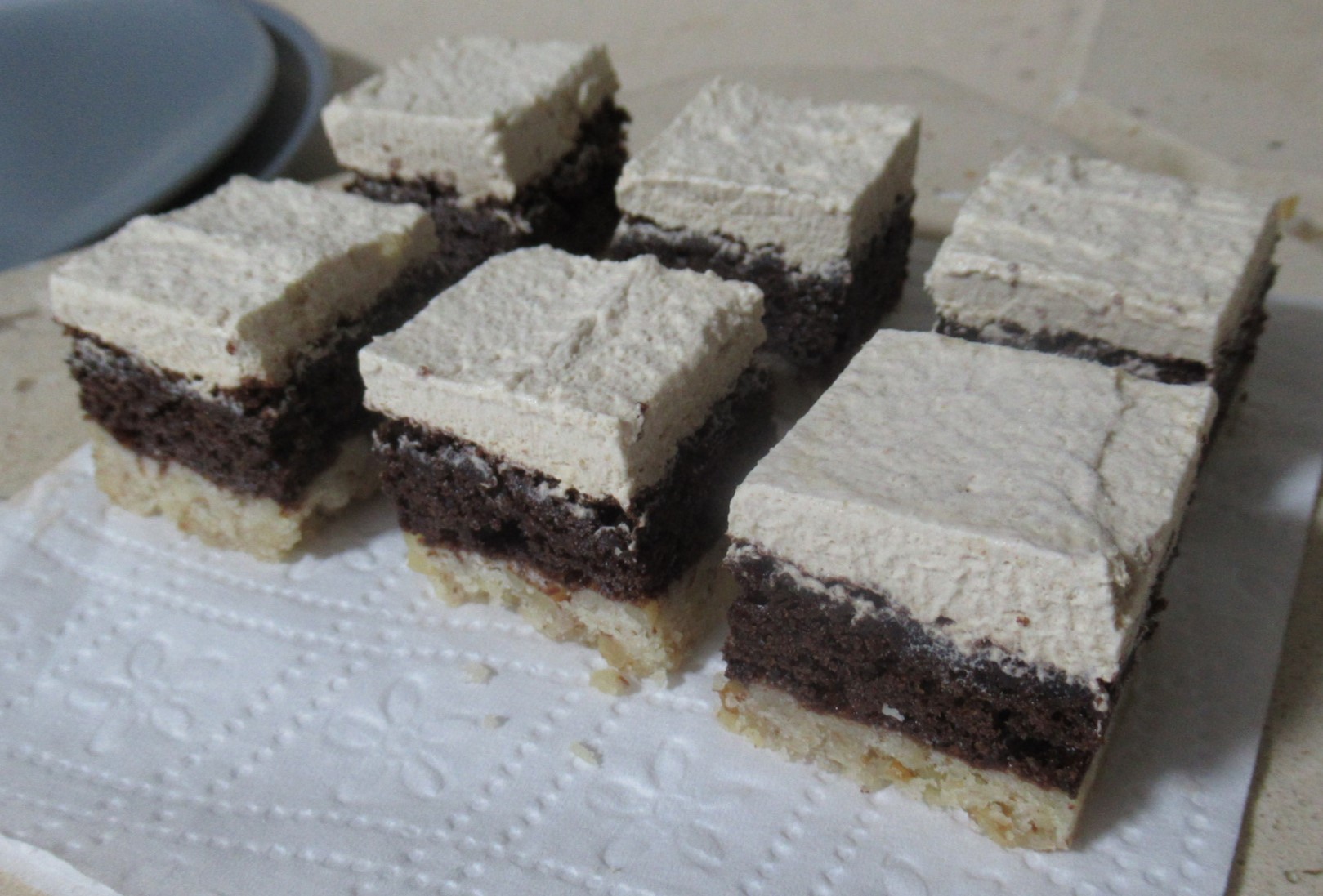 עוגות/עוגיות עוגת שכבות אגוזים ושוקולד עם קרם קפה מעודן---