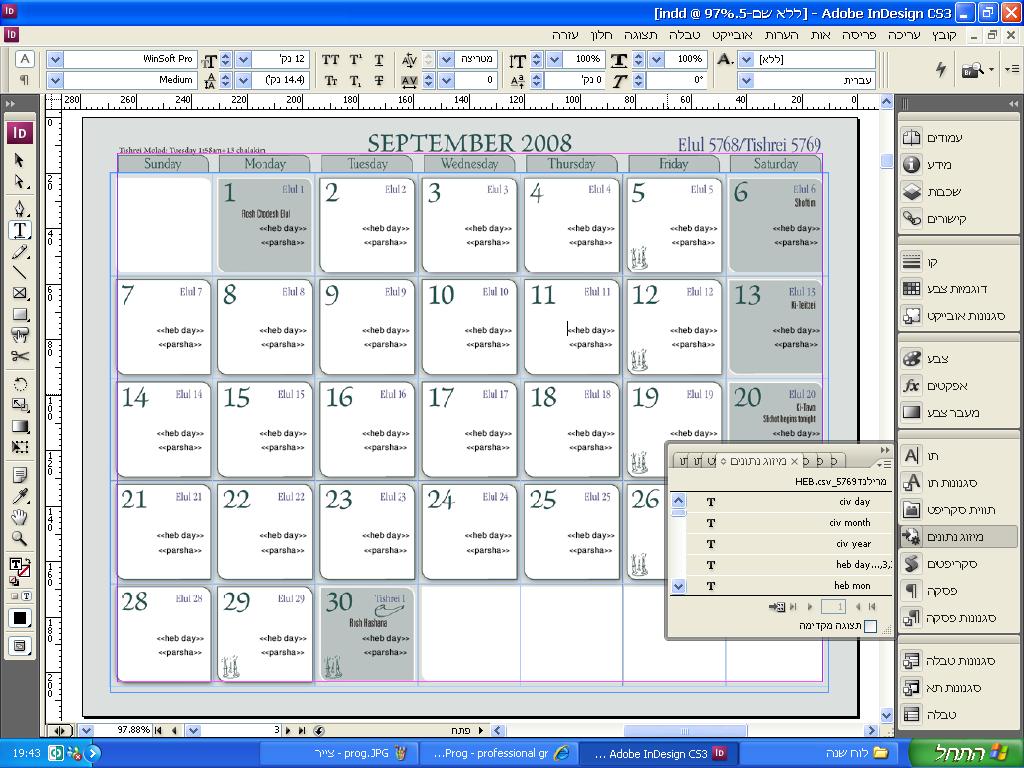 ואז בכל העמודים הבאים הוא יריץ את השורות הבאות (שורה ראשונה הייתה המקום: תל אביב וכו'. שורה שניה תהיה זמן של כניסת שבת בתל אביב לפרשת בראשית.)