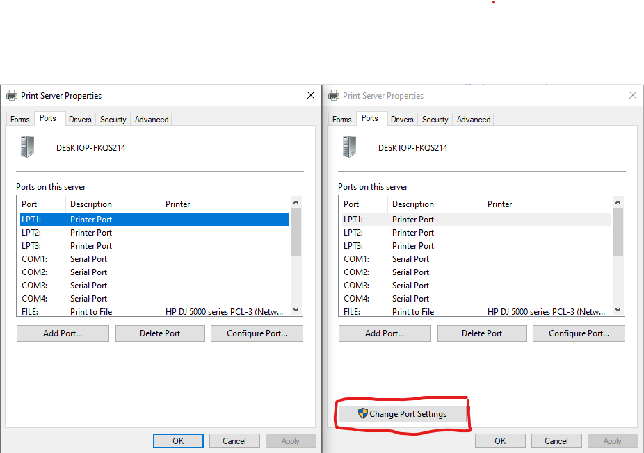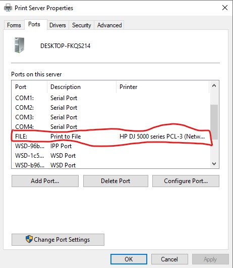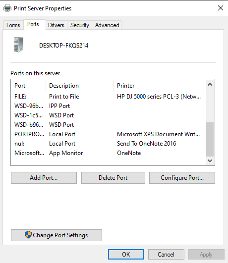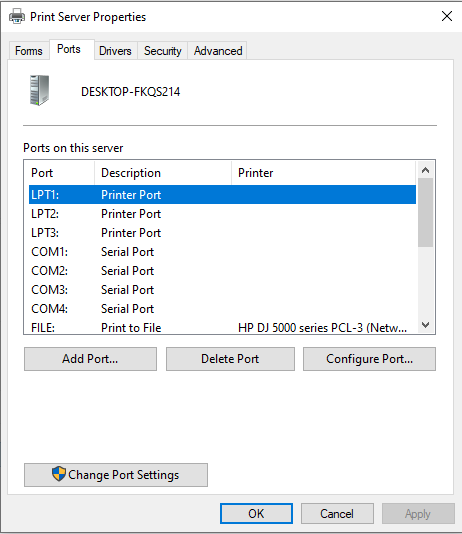לא שם אתה צריך להגדיר, אלא בהגדרות המדפסת בפועל (לא בשרת), היינו תיכנס להגדרות של ווינדוס 10 > התקנים > מדפסות > בחר את המדפסת הרצויה > נהל > מאפייני מדפסת > portsכשאני פותח את את מאפייני שרת הדפסה (print server properties)