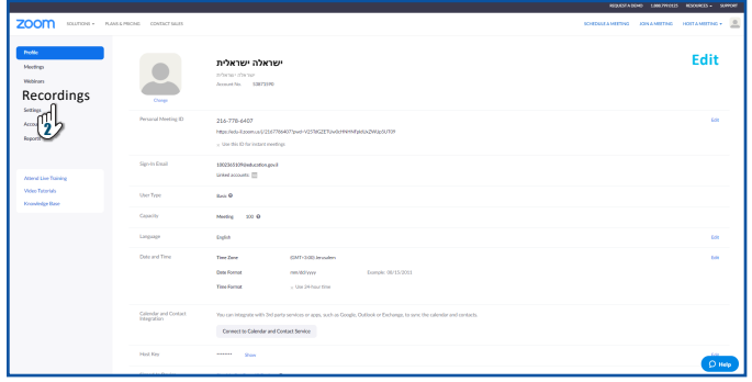 בעמוד הראשי, במקום שיש משמאל הגדרות שונות יש גם Recordings- הקלטות. משם ניתן להעתיק קישור של הקלטה.