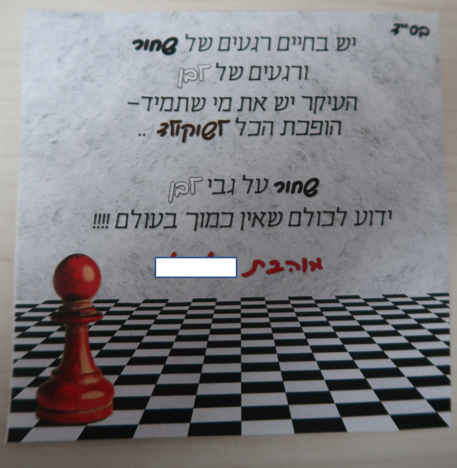 התחלתי לחשוב על תירוצים: אולי אני אגיד שזה של אחותי, אולי של חבר שלא לומד בישיבה, אולי כיוון אחר. אחרי תפילת שחרית בכוונה עצומה, התחלתי להירגע. לא עשיתי שום דבר רע. במקרה הכי גרוע והיה לי קצת אי נעימות מהצוות שיֵדע שהמצוין של הישיבה מחזיק בתחביב סודי של ציור בשעות הפנאי. לא נעים, אבל גם בכלל לא נורא. בחלומותיי השחורים ביותר לא דמיינתי מה הולך לקרות. בשעת הצהריים נתלה פתק בלוח המודעות של הישיבה: "בשעה 16:00 , מיד אחרי תפילת מנחה, שיחה חשובה לכל הבחורים. איש בל ייעדר".