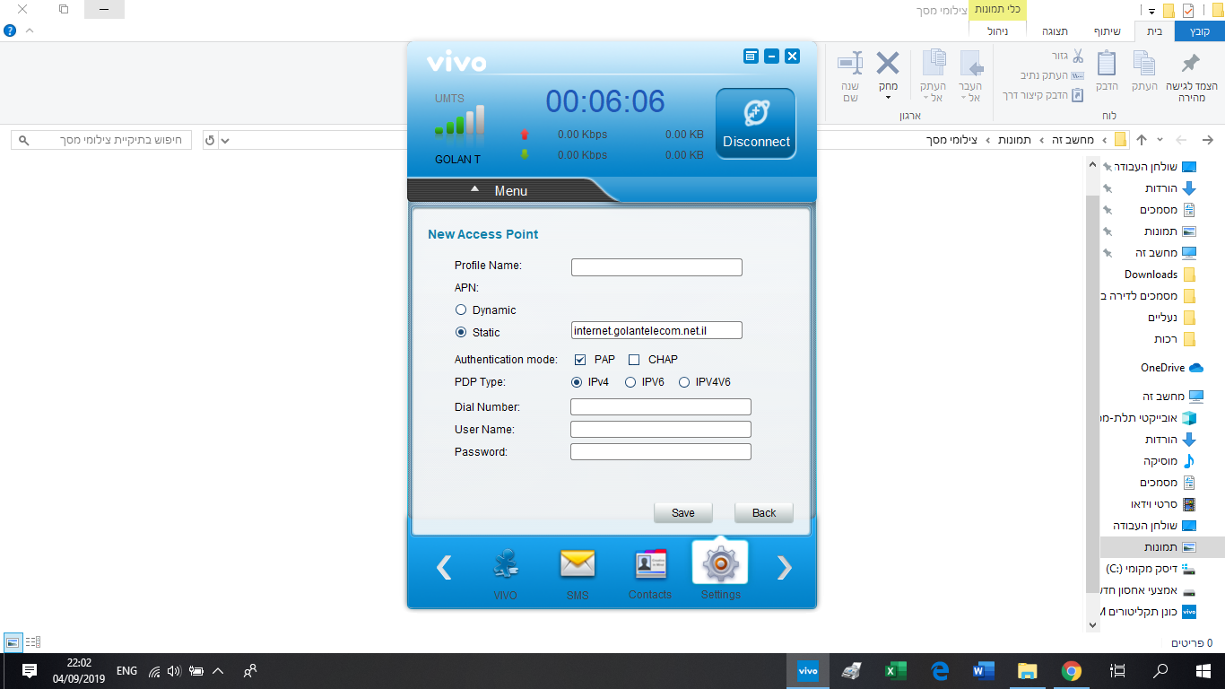 במידה ואינו עובד, צריך להגדיר את APN לכתוב בו: internet.golantelecom.net.il ולשמור