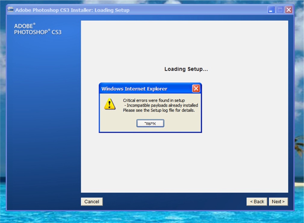 כללי עזרה | בעיה בהתקנת פוטושופ/אינדיזיין