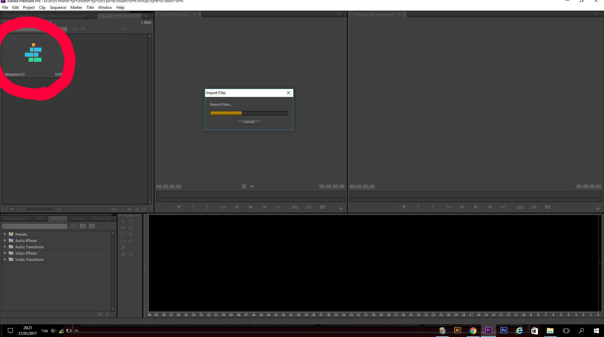 ברגע שתלחצי על הסיקוונס שעליו את עובדת יופיע הטיימליין