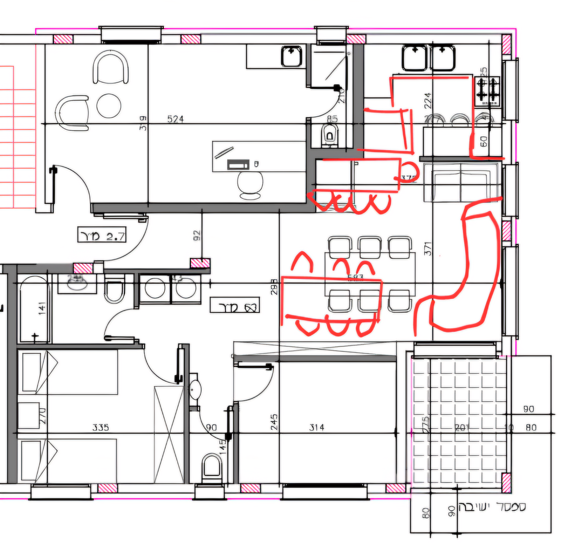 הייתי משנה את המטבח כמו בסקיצה המצורפת .