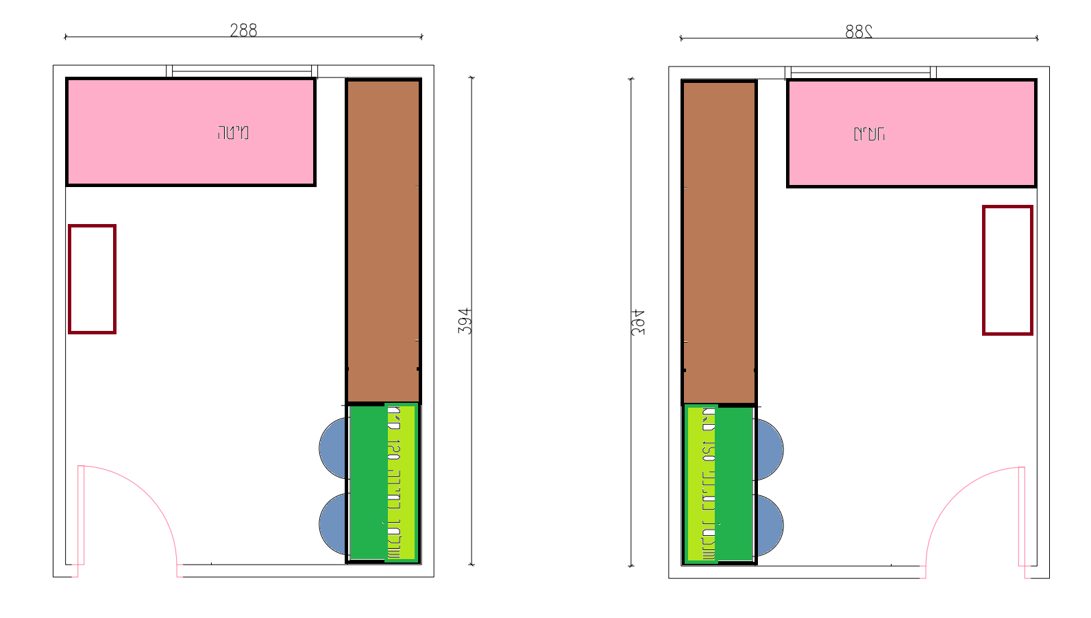אפשר את הארון הקצר שעל הקיר של הדלת לעשות בעומק צר יותר 40 ואפילו פחות.