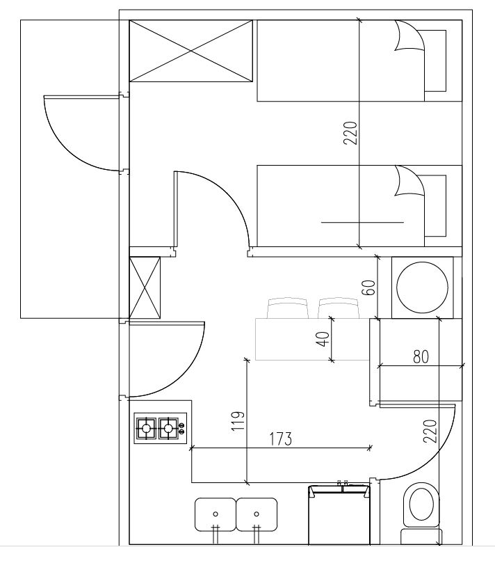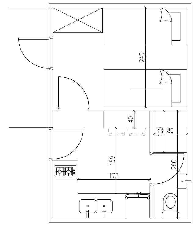 לא אהבתי שבכל השרטוטים רואים את המיטות מדלת הכניסה ליחידה, לכן ניסיתי בצורה שתהיה יותר פרטיות