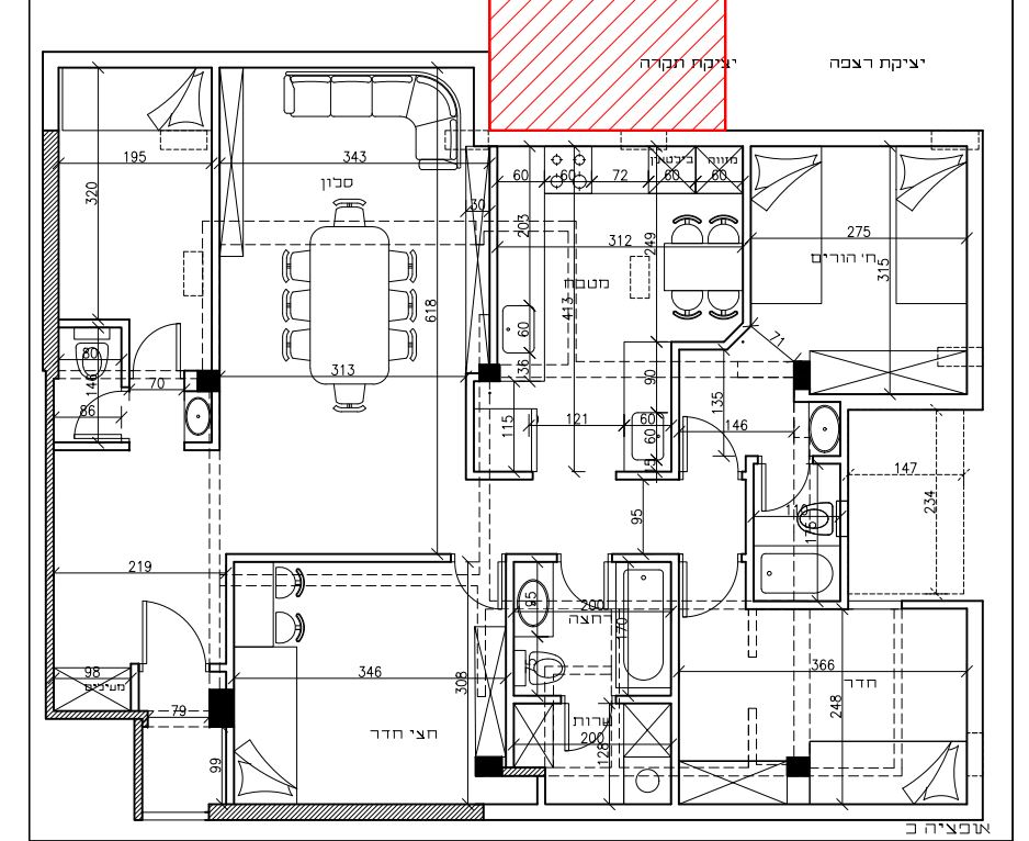 פתאום נורא הפריע לי הסמיכות של החדר הורים למטבח והרעש התמידי שיהיה לי עם הקיר הגובל למטבח,