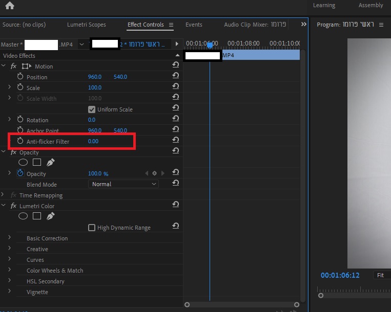 בעזרת Anti-flicker בפרימייר אפשר לפתור את הבעיה: