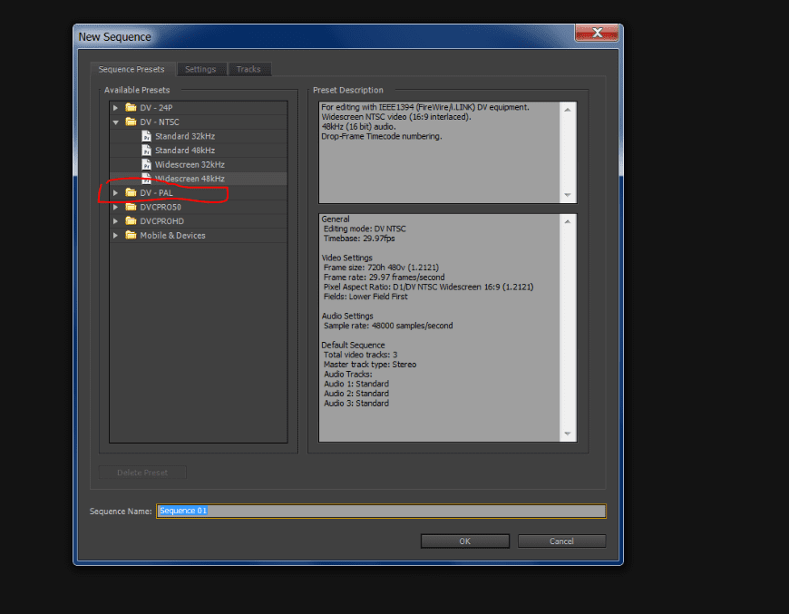 דבר ראשון, לבחור את האופציה שסימנתי של DV-PAL
