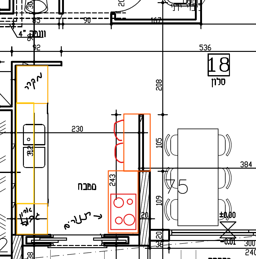 ואגב, ה"כתום" הוא ממשיך את השיש? אז לא נראה שיש שם מקום ל2 תנורים