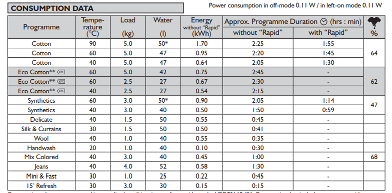 תוכניות כביסה (לפי הסיבוב עם כיוון השעון):