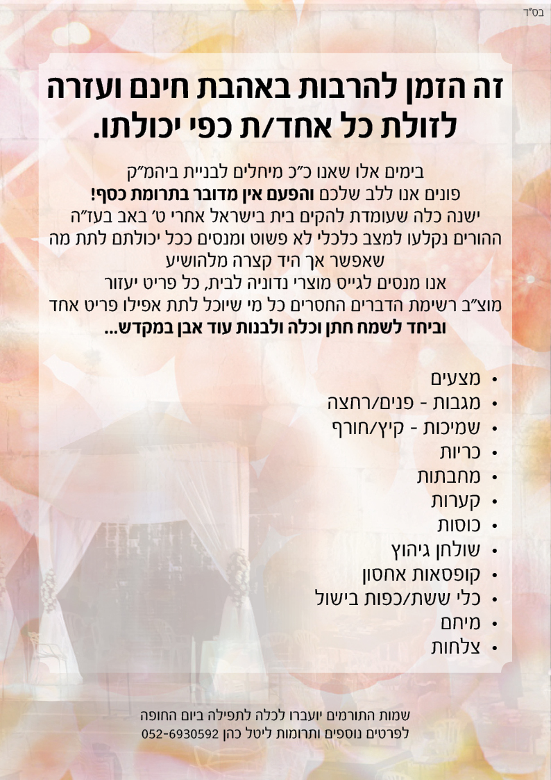 עזרה דחופה לכלה שאין לה נדוניה!
