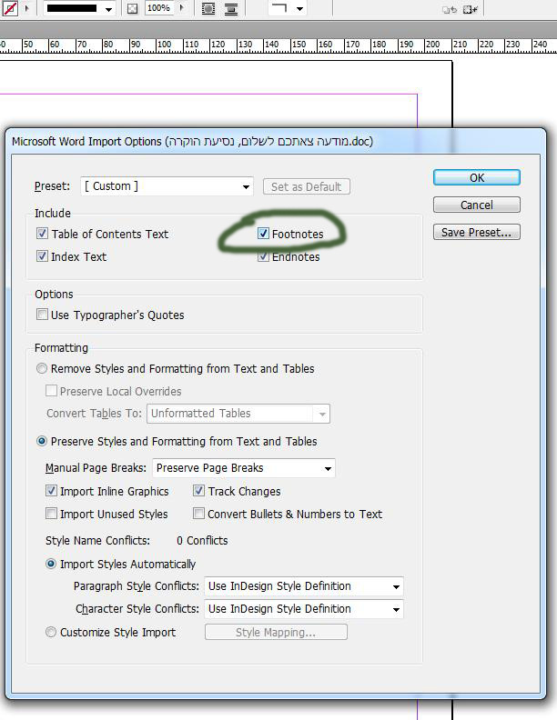 בייבוא הקובץ מסומן שייבא גם את ההערות?