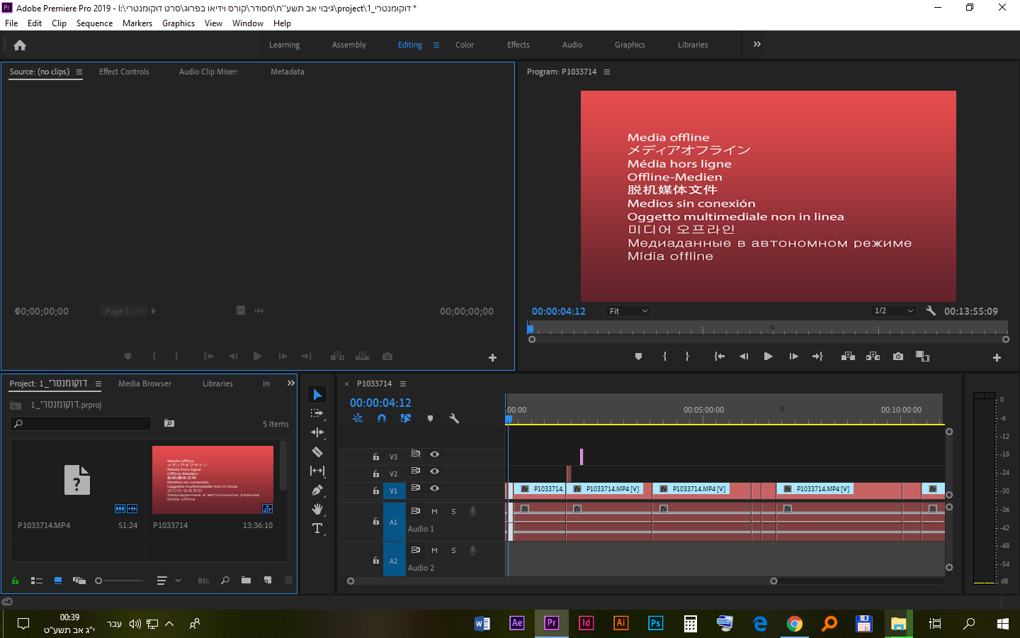לחיצה ימנית על הקובץ החסר בחלונית הפרויקט ובחירה באפשרות 'Link Media' תוביל אותך לתיקייה בה תבחרי את הקובץ החסר- ואם יתמזל מזלך וכל הקבצים זהים במיקומם ו/או דומים בשמם יתכן שהם יקשרו את עצמם ביחד אם הקובץ שקשרת ידנית ותחסכי לעבוד אחד אחד