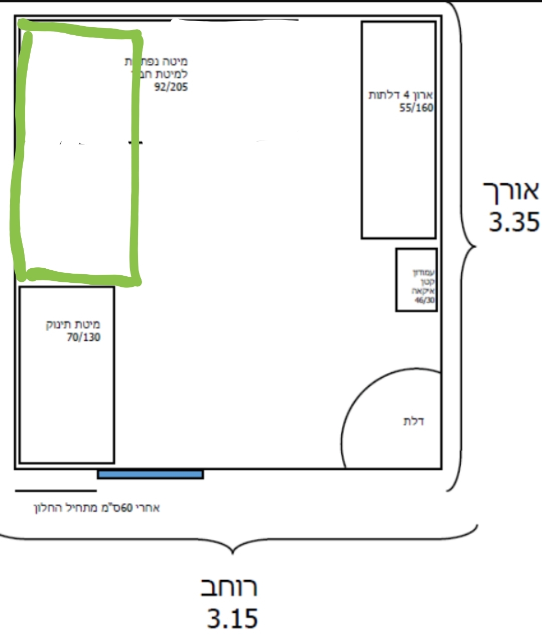 • צד ימין: חלון – לכן ללא עמוד עץ בקצה הימני של המיטה