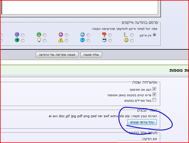 בפתיחת הודעה/תגובה יש לך בסרגל כלים למעלה אייקון של אטב