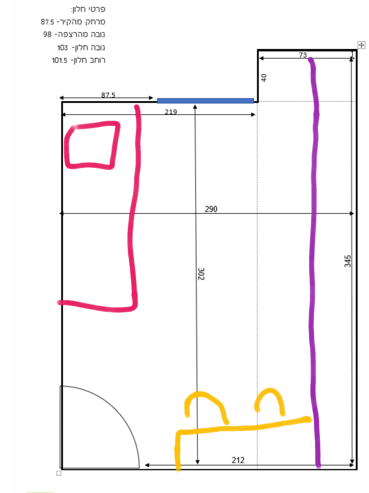 מצורף שרטוט של החדר, החדר אמור לשמש 3 בנות בי"ס
