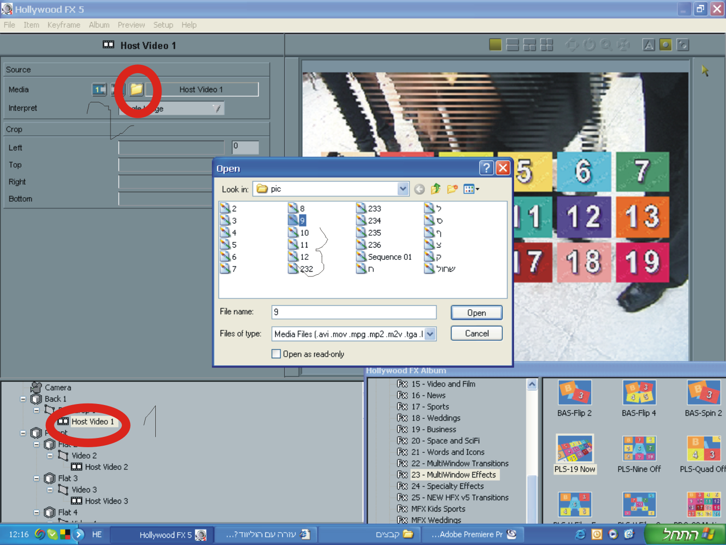 שלב שני את בוחרת בחלון שמאל למטה HOST VIDEO1