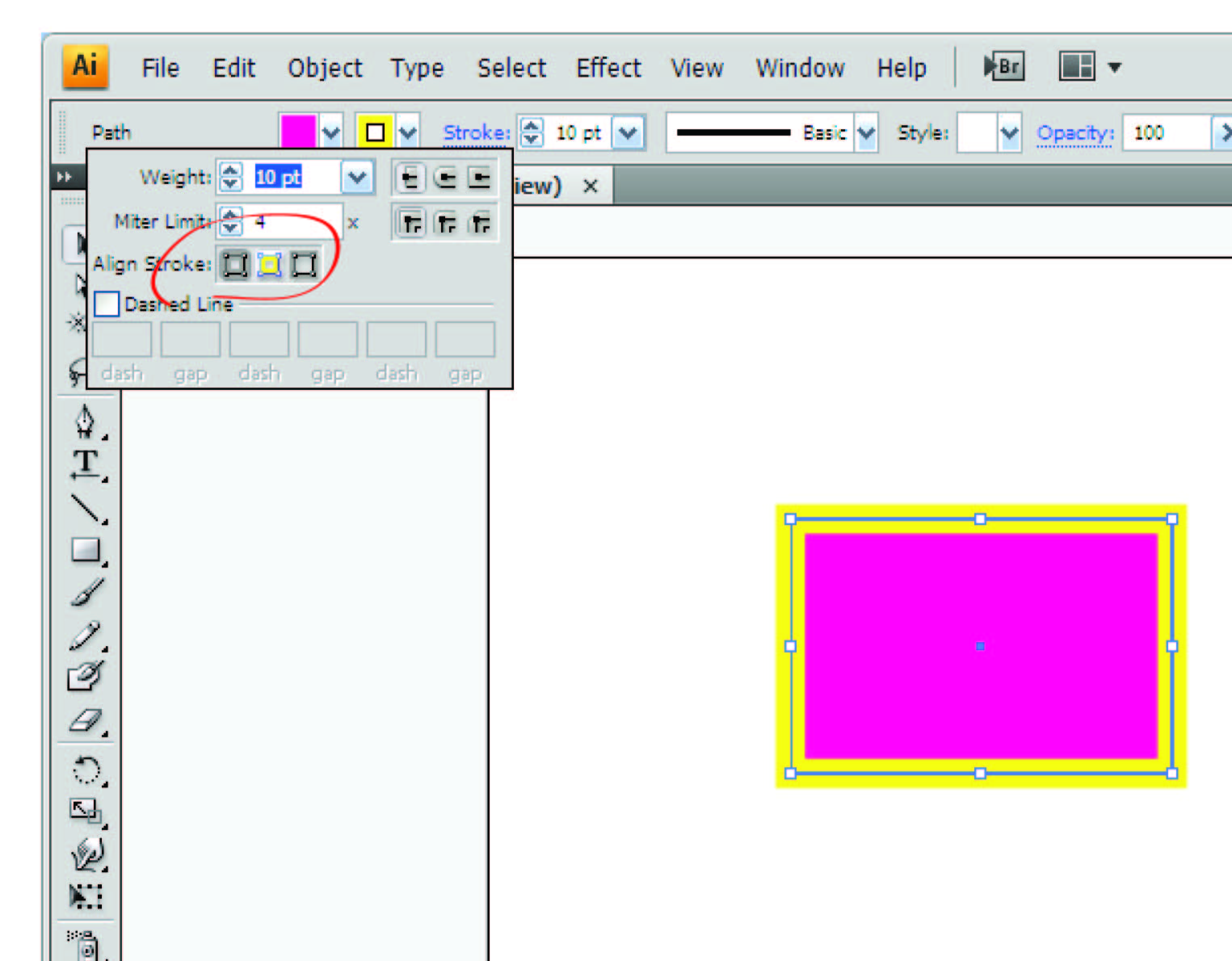 כאשר אני עושה צורה באילוס' נגיד עיגול ורוצה לתת צבע לקו העיגול אבל שהצבע יהיה כלפי פנים העיגול ולא באופן שווה לשני הצדדים איך משנים זאת?