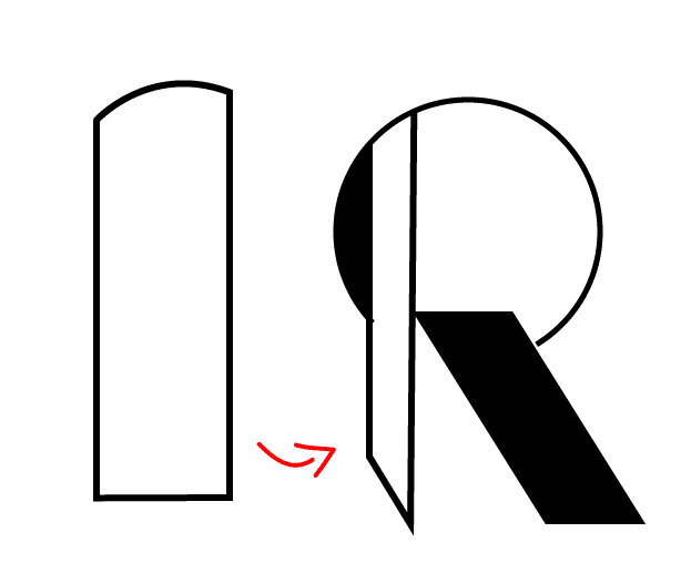מבחינת האות R יושב לדעתי הכי נכון גרפית. אין לו תחושה תלת מימדית כמו בתכלת אבל האלמנט נראה טוב, הייתי מנסה ללטש, אולי שהקיר (עם הסטרוק) יותר "יישען" על הקיר השני (המלא)- כמו פה, ואז יראה יותר R