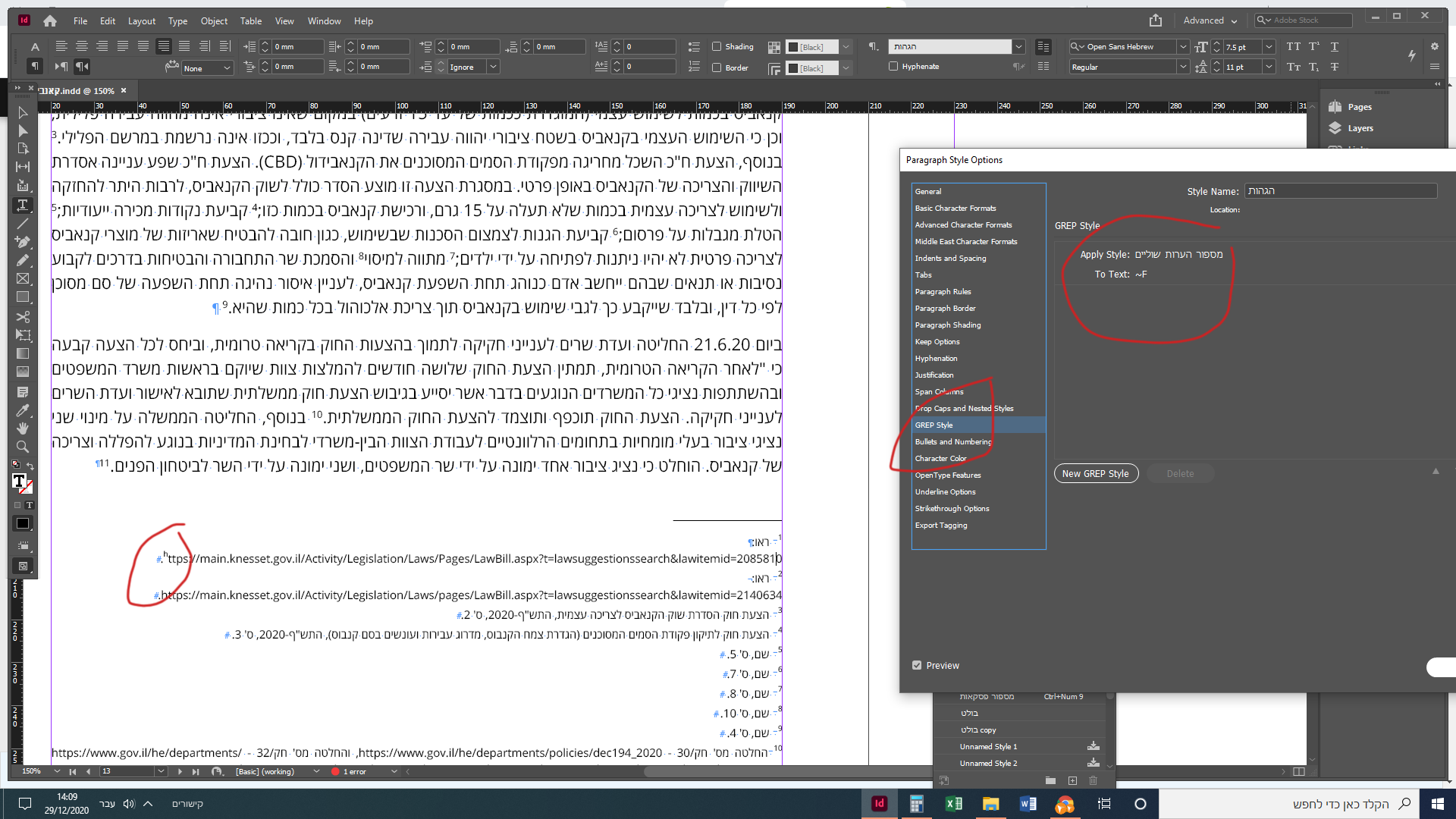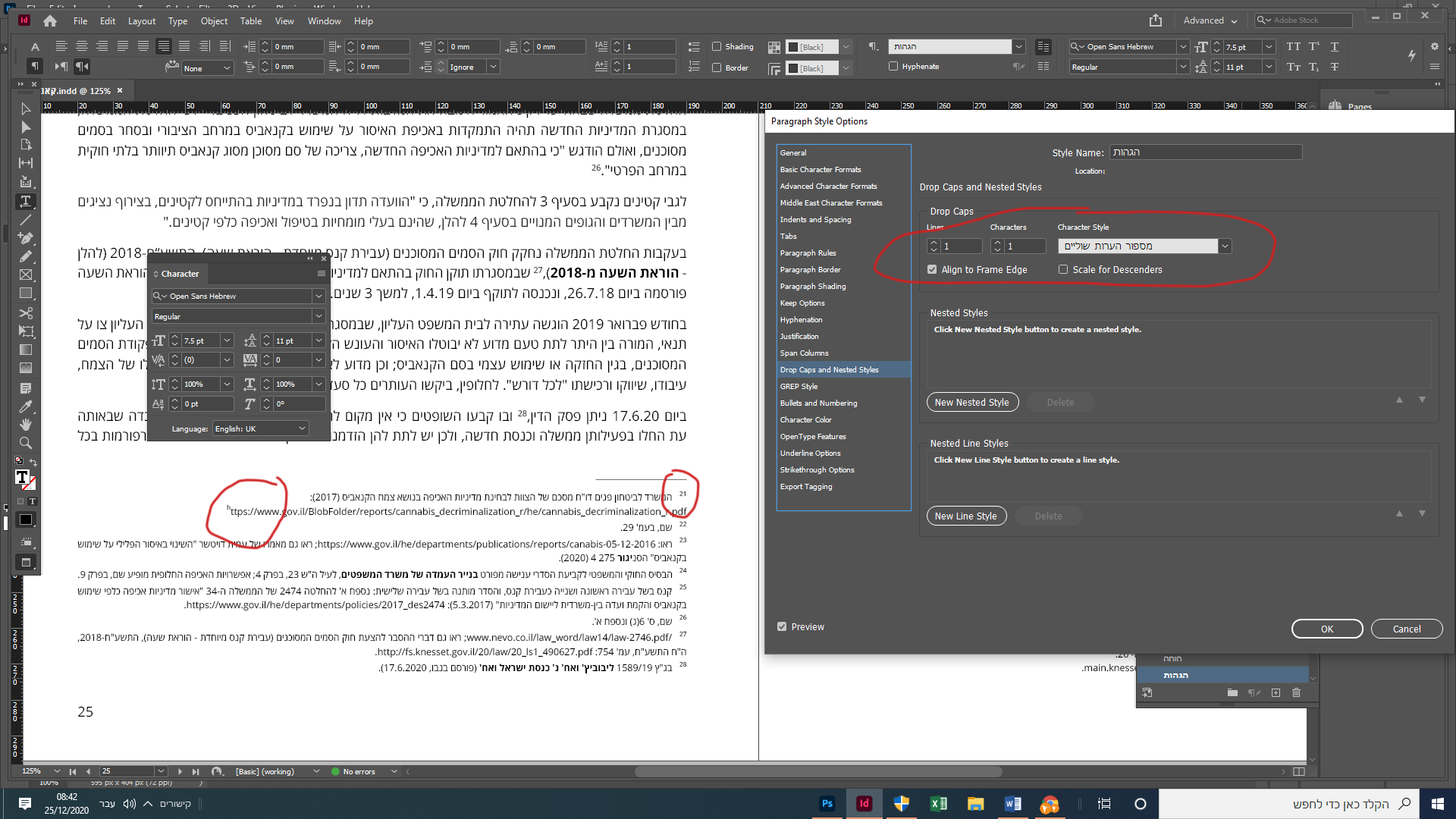 לכן בניתי דרך הלשונית drop caps and nested styles בהגדרות בעיצוב של פסקאות הערת שוליים