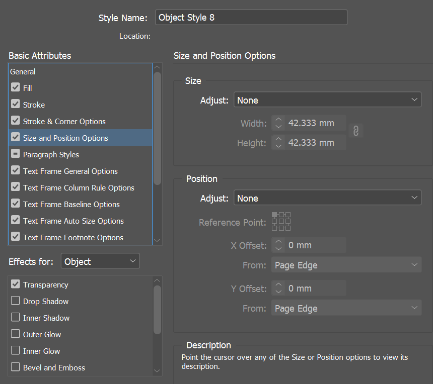 במאפיינים של סגנון האוביקט יש אפשרות לקבוע את הגודל: