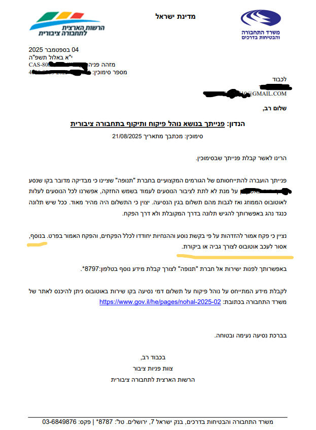 אז הנה, תשובת משרד התחבורה בצורה הברורה ביותר