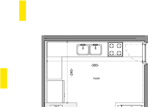 עיצוב מטבח לפרקטי עדכני ומנוצל - "אתגר" מי ידע? מצורף שרטוט