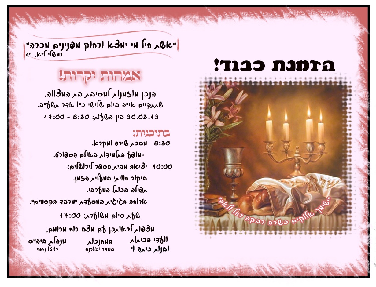 כל מי שזקוק לעריכת פלייר וכד' -לבתי ספר בלבד, אני מוכנה לערוך.