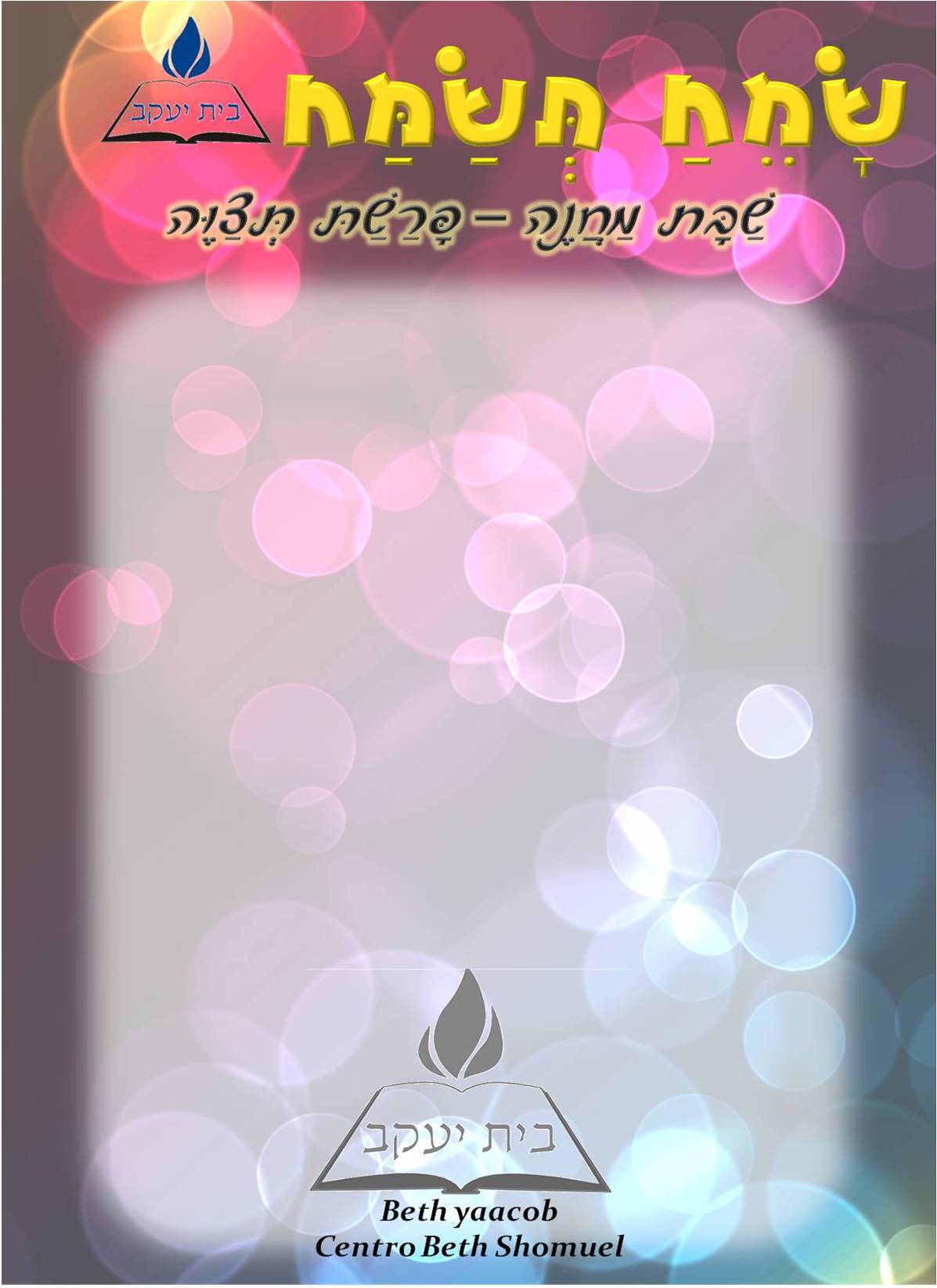 הלוגו ואם אפשר לנקד ולכתוב בקטן שבת מחנה פרשת תצוה