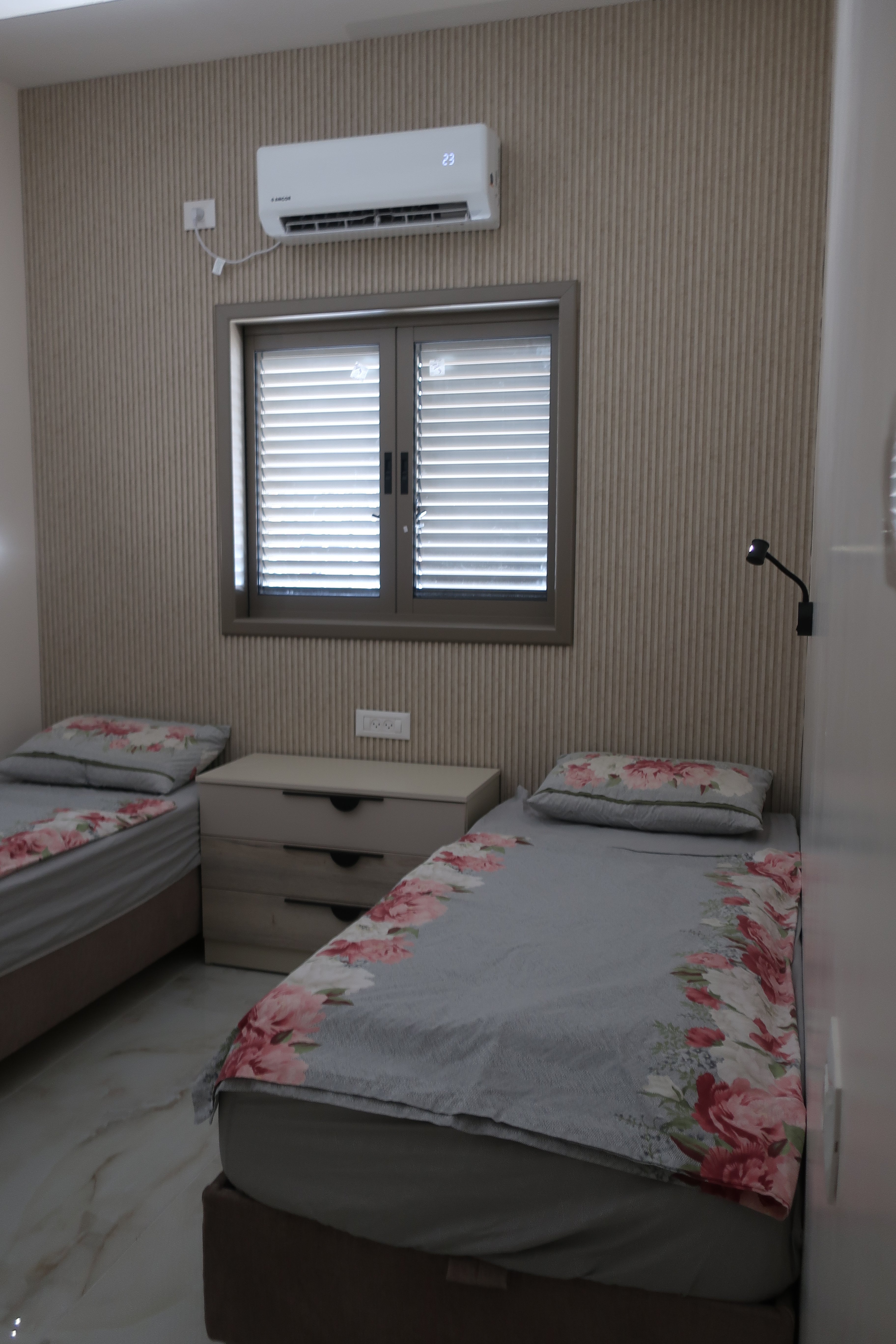 וילון גם בעייתי פה בגלל המזגן, זה אופציה בכלל בכזה חדר שינה? יש פיתרון?