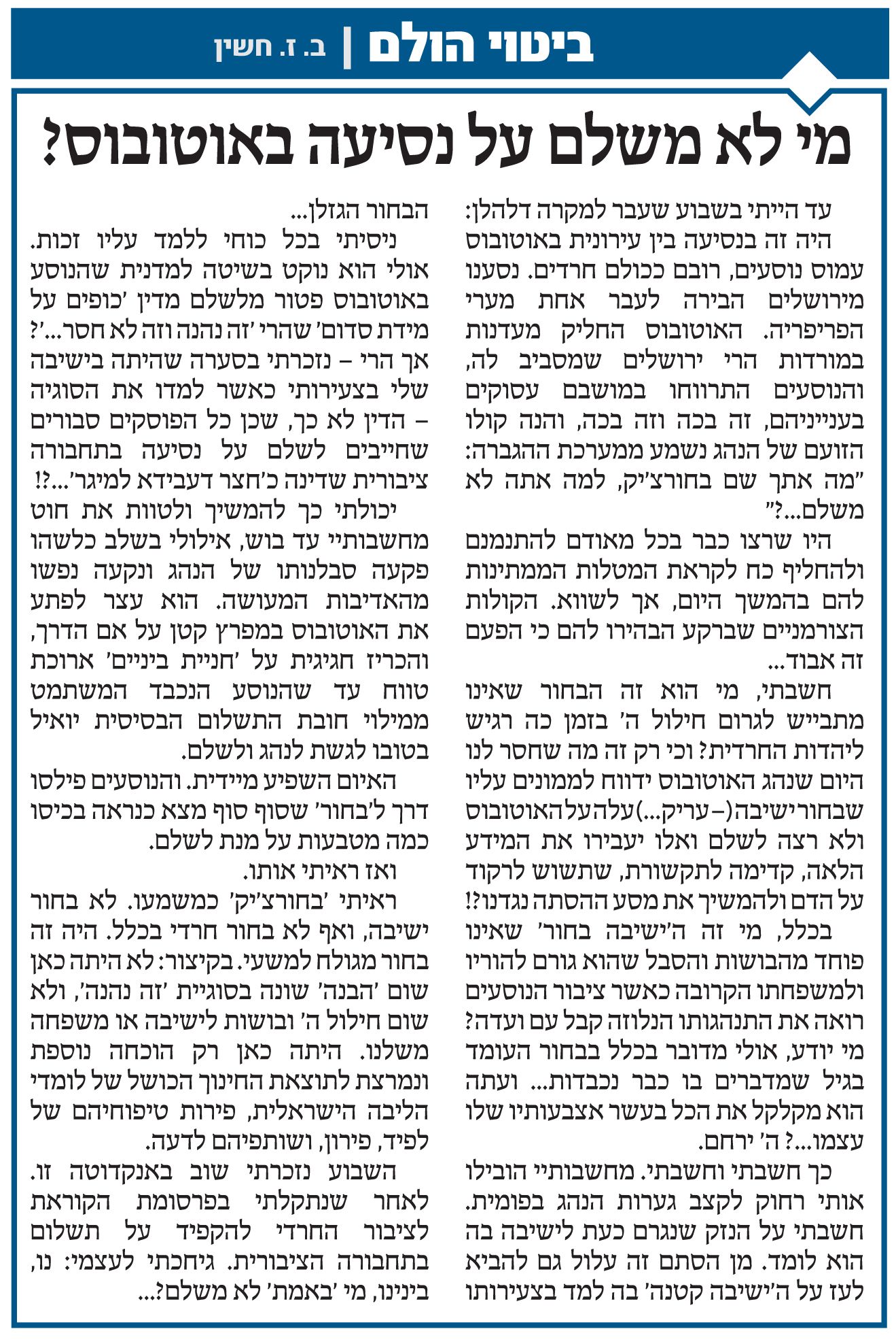בגליון לבית שחולק למנויים בחמישי היה פרסום מביש זה!