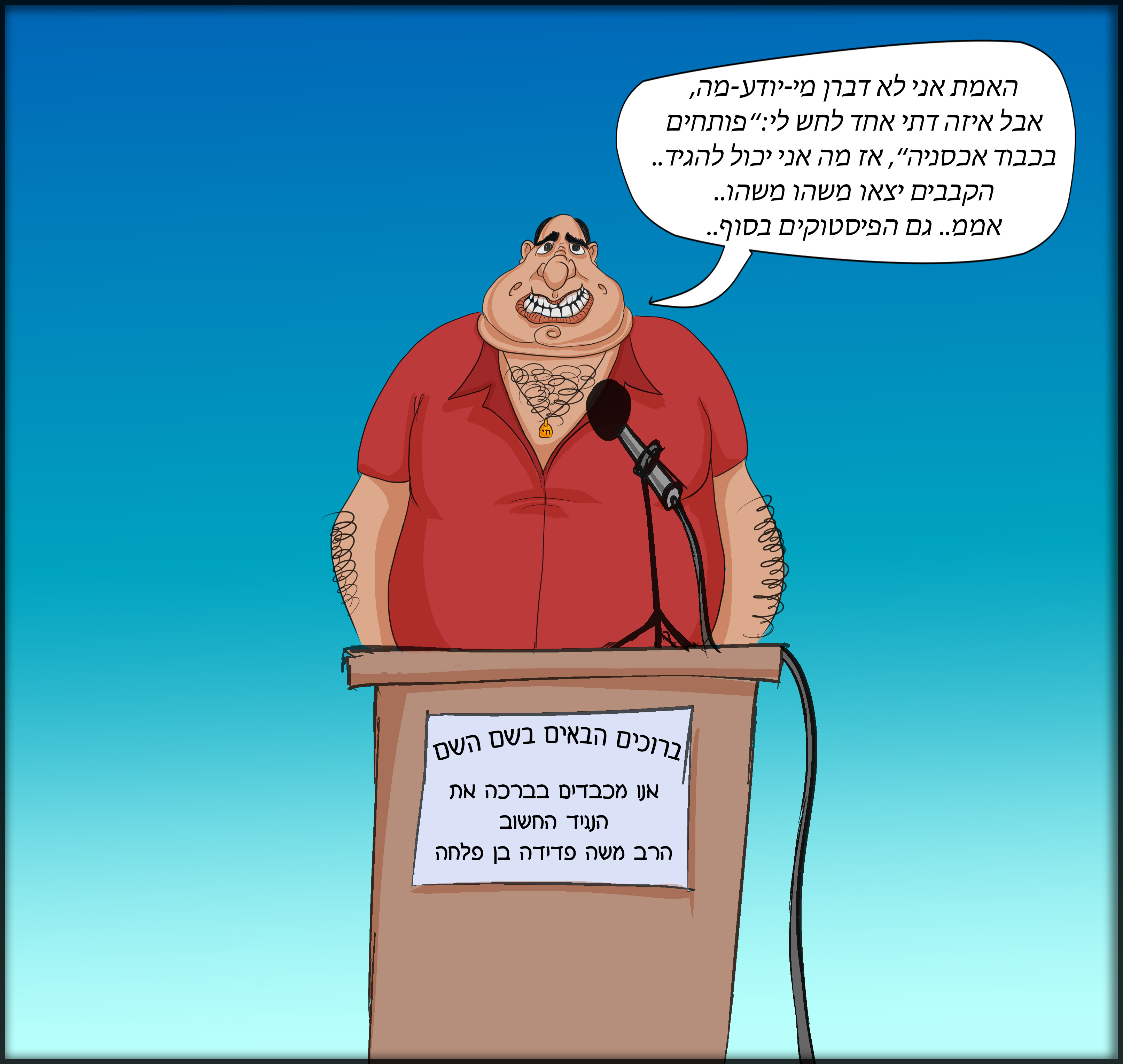 הנה אני אעלה עוד משהו קטן, אמנם לא לגמרי גמור.. אמור להיות שולחן "מזרח" מאחוריו עם כמה רבנים מובכים.. :)