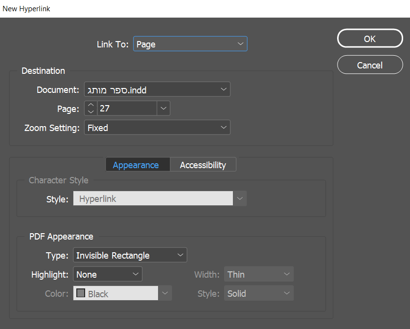 אינדיזיין עמוד עם קישורים לעמודים אחרים בקובץ