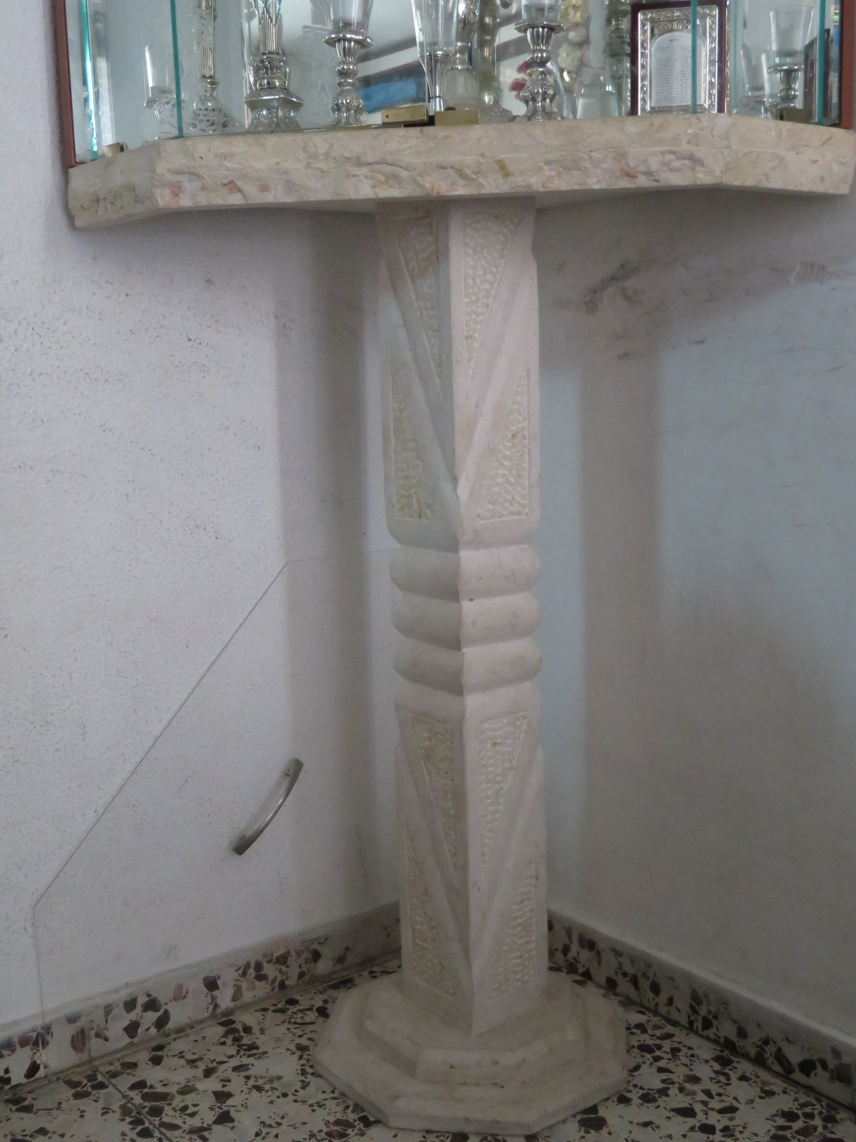 את העמוד קנו באזור ים המלח בירידות לכיוון דרום בזיל הזול אצל הערבים שם שמוכרים כל מיני כדים ועמודי שיש במחירים מצחיקים