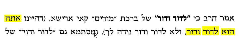 היה פעם ויכוח אצלנו בקשר לנוסח במודים, 'צור חיינו מגן ישענו אתה הוא לדור ודור נודה לך ונספר...' אם ה'לדור ודור' קשור לפניו או לאחריו.
