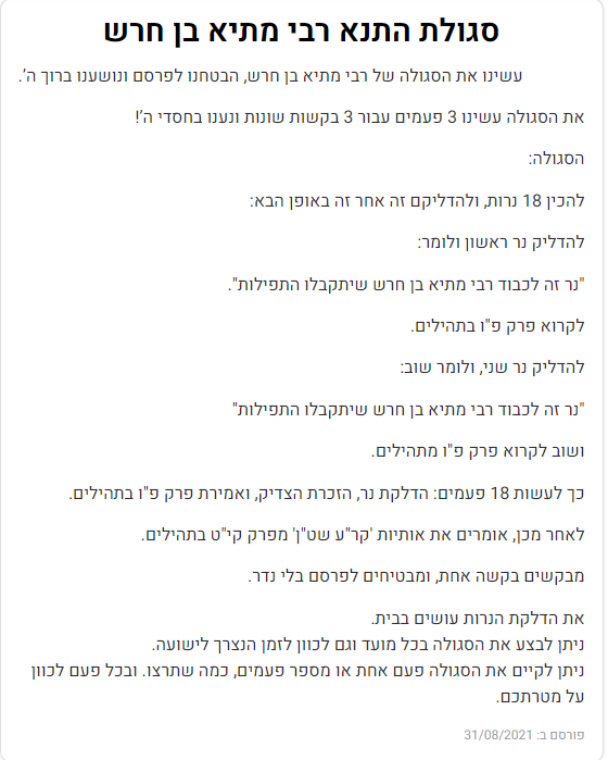 עשיתי את הסגולה של מתיה בן חרש,