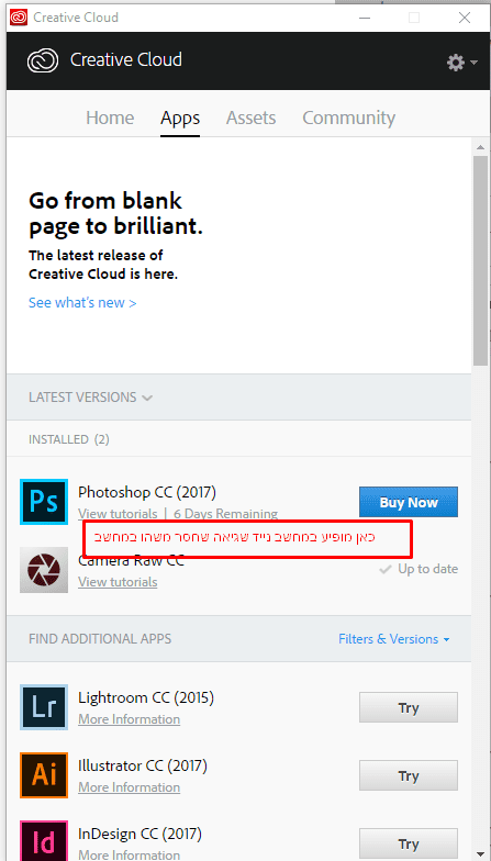 התקנתי גרסת נסיון של פוטושופ 2017 על המחשב נייח (ווינדוס 10)