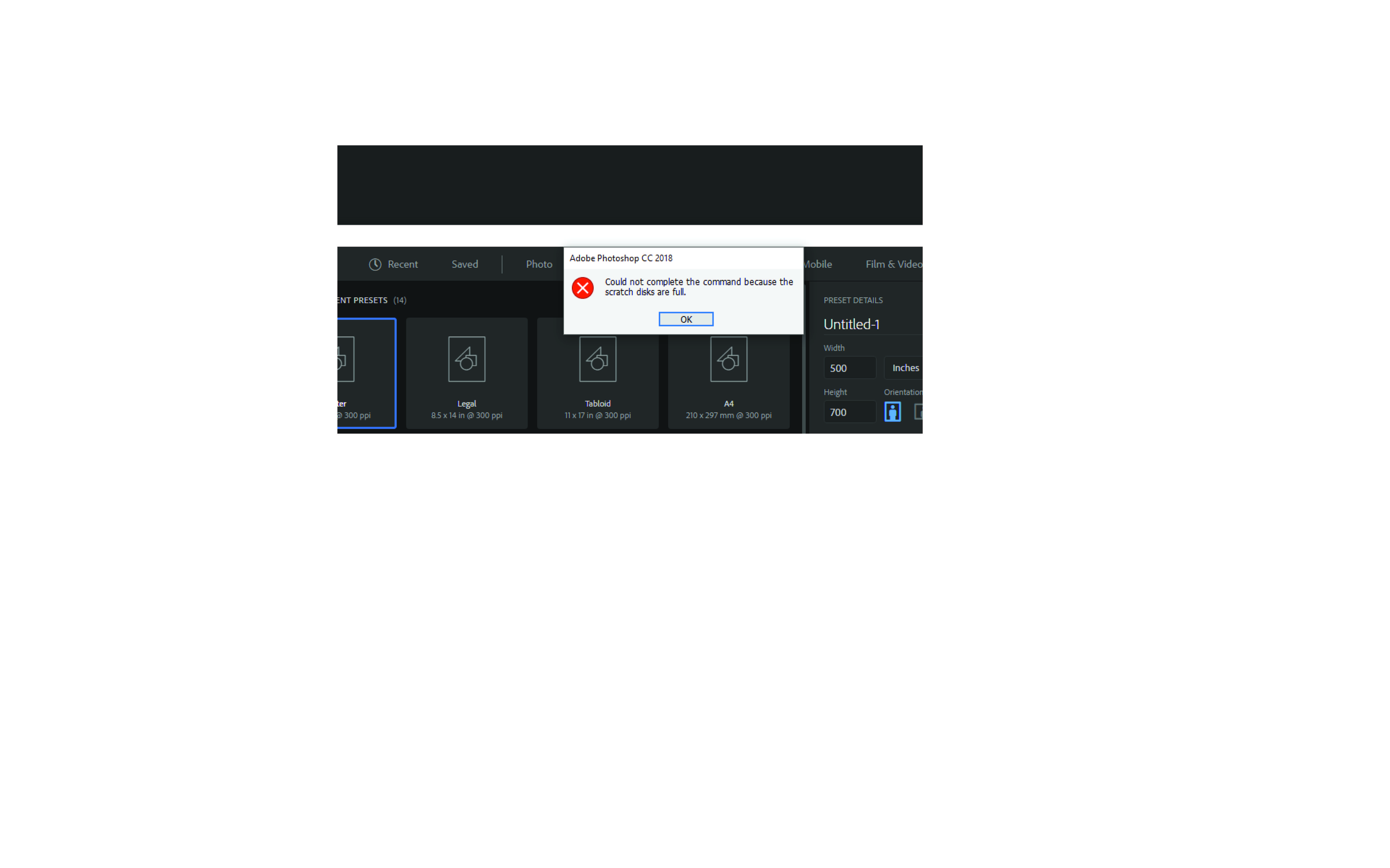 פוטו שופ לא נותן לפתוח מסמך חדש