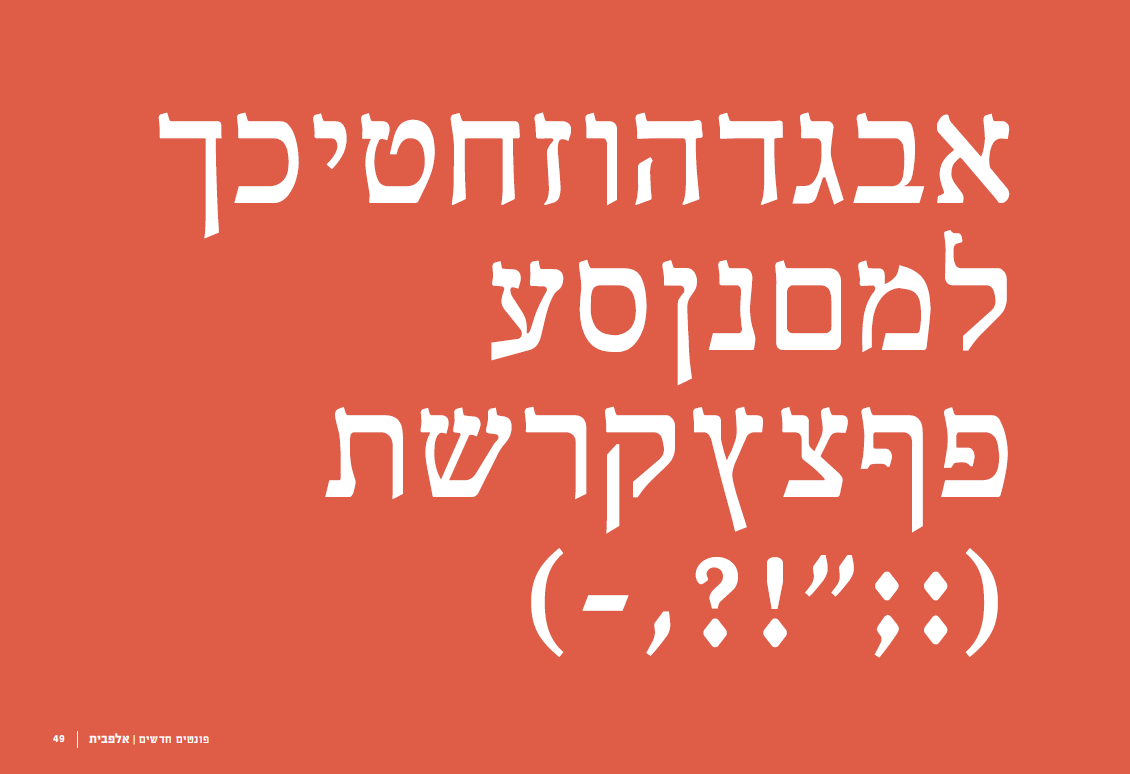 הפונט האחרון, ובפרט הפוסטר שעוצב לו, בהשראה כבדה מ"הטייס", ובאופן כללי נראה שהוא עוקב היטב מה קורה בגזרת הטיפוגרפיה העברית כדי לתת מענה מתאים, ואני אומרת את זה לשבח.