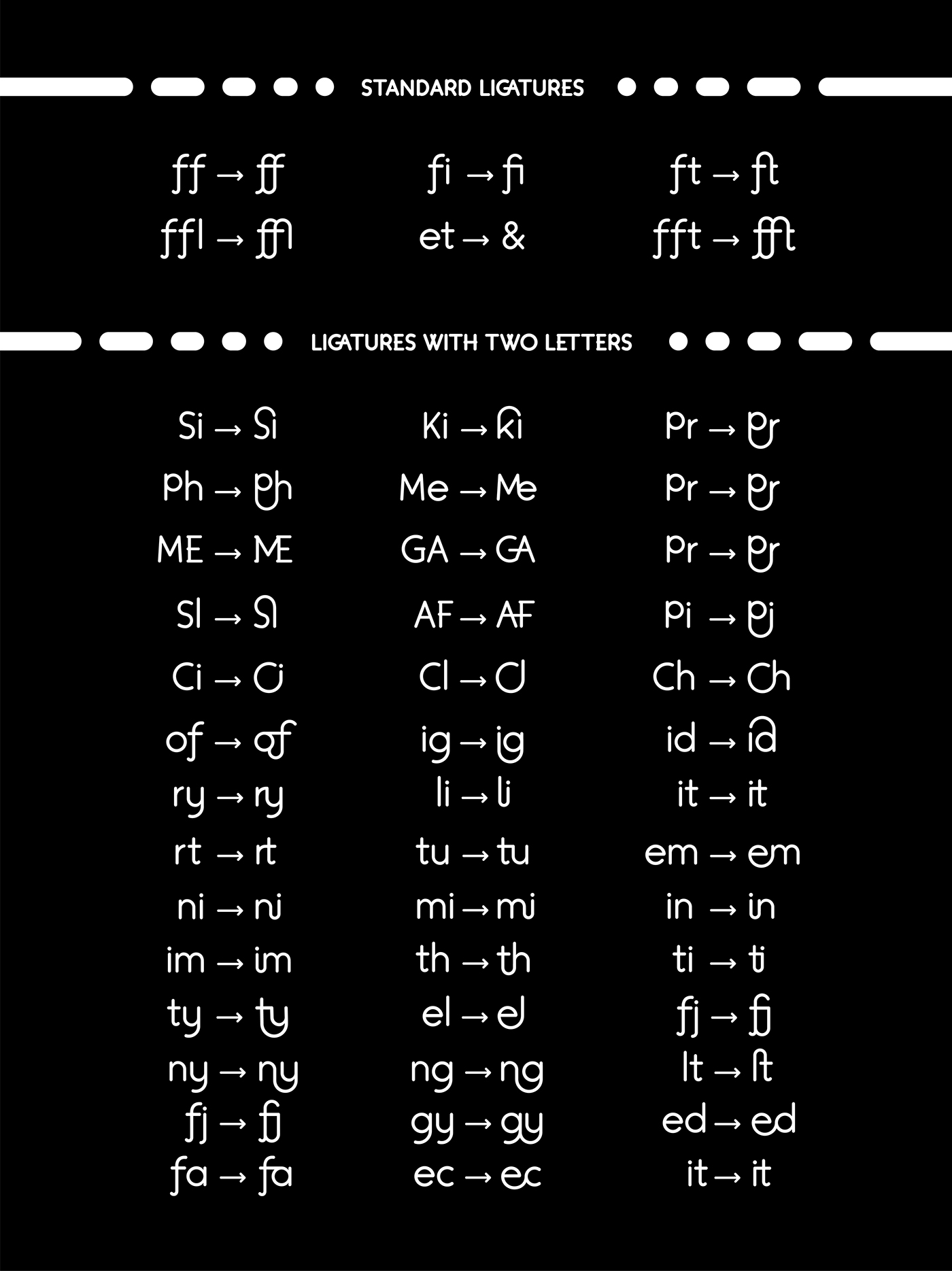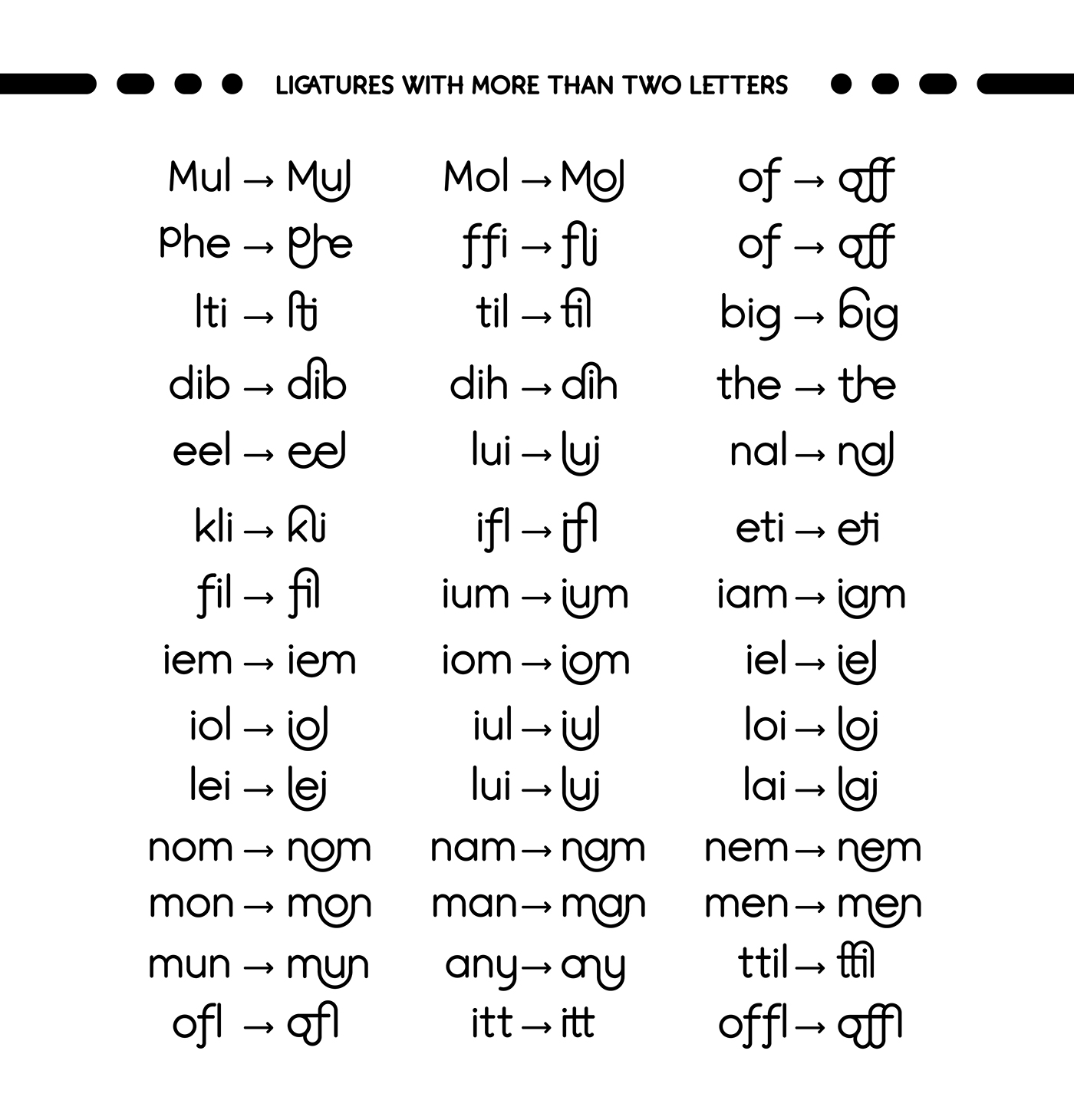 דוגמאות לABC ולליגטורות שניתן לשלב באותיות: